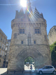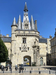 C'est aussi au 15e siècle que la célèbre tour Pey-Berland est construite à la demande de l'archevêque Pey Berland (elle ne prendra son nom qu'en 1866). Il s'agit de doter la cathédrale Saint-André d'un clocher avec sa cloche et son bourdon. Mais dans ce terrain marécageux, la crainte que le poids des cloches ne soit trop lourd pour la cathédrale et qu'elle s'effondre à pousser la création de cette tour quelques mètres à l'écart. Notre-Dame d’Aquitaine trône au sommet. Sur la place du Palais des ducs d'Aquitaine -palais bâti à partir du 11e siècle-, une nouvelle porte, la porte Cailhau, est érigée en l'honneur du nouveau roi Charles VIII (règne 1583-1498). C'est l'une des deux portes médiévales encore visibles aujourd'hui à Bordeaux.